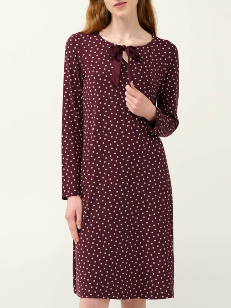 ✔ Dámská noční košile s dlouhým rukávem ✔ Luxusní mikromodal – extrémně jemný a prodyšný ✔ Elastan pro pružnost a volnost pohybu ✔ Elegantní puntíkový vzor ✔ Výstřih s jemnou mašličkou – ženský detail ✔ Pohodlný, volnější střih vhodný na spaní i relax