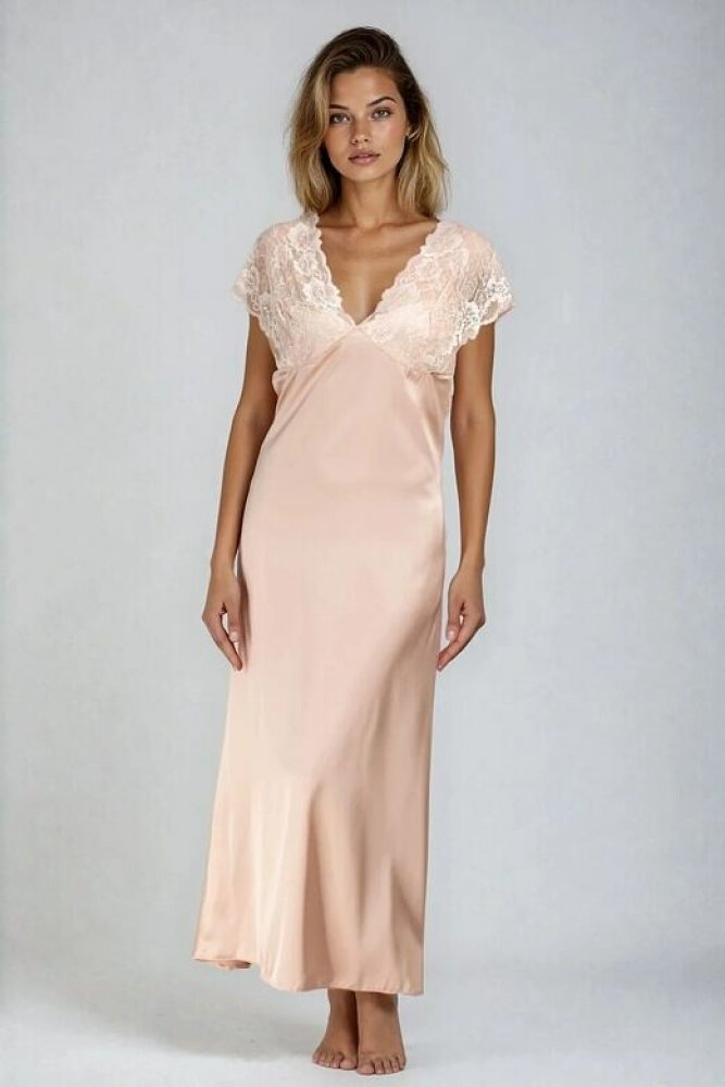 Luxusní noční košilka Mactan je vyrobená z kvalitního saténového materiálu, má béžovou barvu a elegantní délku. Saténová noční košilka Mactan v béžové barvě je vyrobena z kvalitního materiálu složeného ze 97 % polyesteru a 3 % elastanu. Materiál je hladký, lehký a příjemný na dotek. Košilka má dlouhou délku 134 cm a elegantní výstřih ve tvaru véčka. Design je jednobarevný, zdobený luxusní krajkou a malou saténovou mašličkou na dekoltu. Produkt je balený v dárkové krabičce, ideální pro dárek.Vyrobeno v EU.