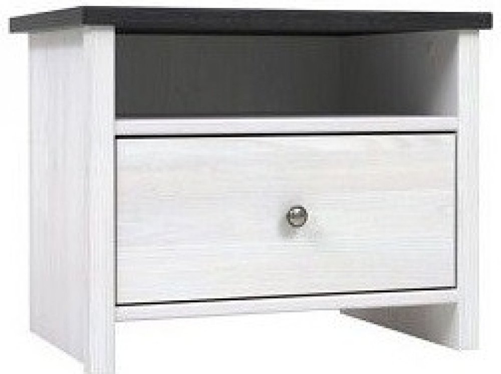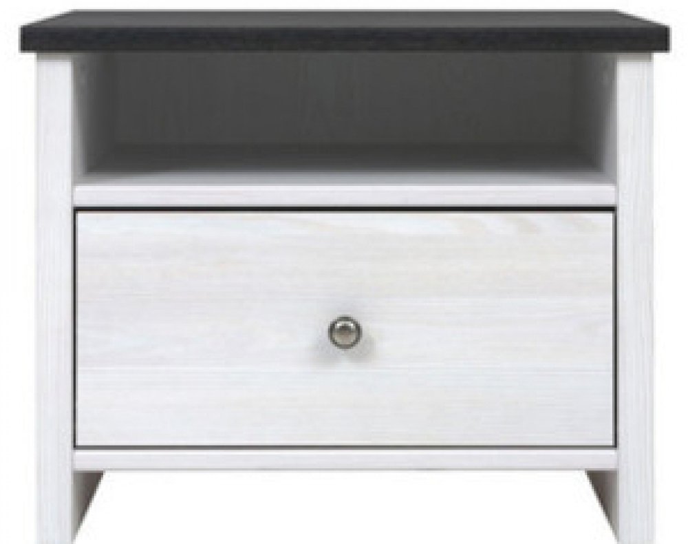 Jednozásuvkový noční stolek PORTO s odkládací policí v horní části.
