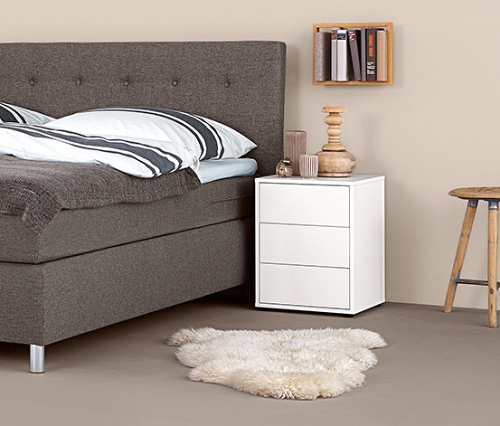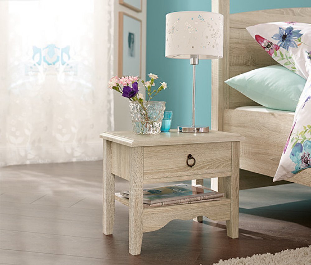 Noční stolek Tento noční stolek s robustními plastovými hranami odolnými proti nárazům je prvkem z naší venkovské série. Zaujme zásuvkami s rámečky a úchyty z matně kartáčovaného kovu. Horní deska je zdobena profilem. Stolek je VYROBEN V NĚMECKU. Stojí na předsestaveném podstavci. Noční stolek se dvěma zásuvkami V tomto nočním stolku má ve dvou zásuvkách s kovovými výsuvy vše své místo, od četby n...