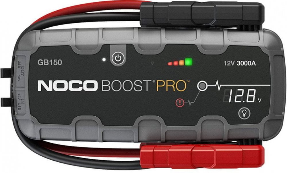 NOCO GB150 přenosné startovací zařízení. Výrobce NOCO. GB150 slouží pro nouzové startování osobních automobilů, dodávek, malých nákladních aut, motocyklů, čtyřkolek, sekaček atd. reálným proudem až 1000A.