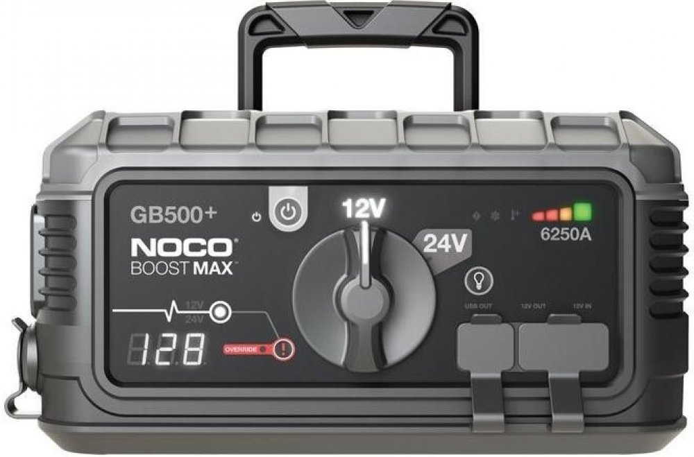 Startér a nabíječka Noco Booster GB500+Startér a nabíječka Noco GB500+ Boostmax je výkonný posilovač pro vozidla s napětím 12 a 24 V. Booster je vybaven pracovním světlem s výkonem 2200 lumenů, digitálním voltmetrem a 2 USB porty. To znamená, že posilovač je zároveň power bankou pro váš mobilní telefon nebo tablet.Vlastnosti: - je vybaven integrovaným posilovačem napájení, který je určen pro připo...