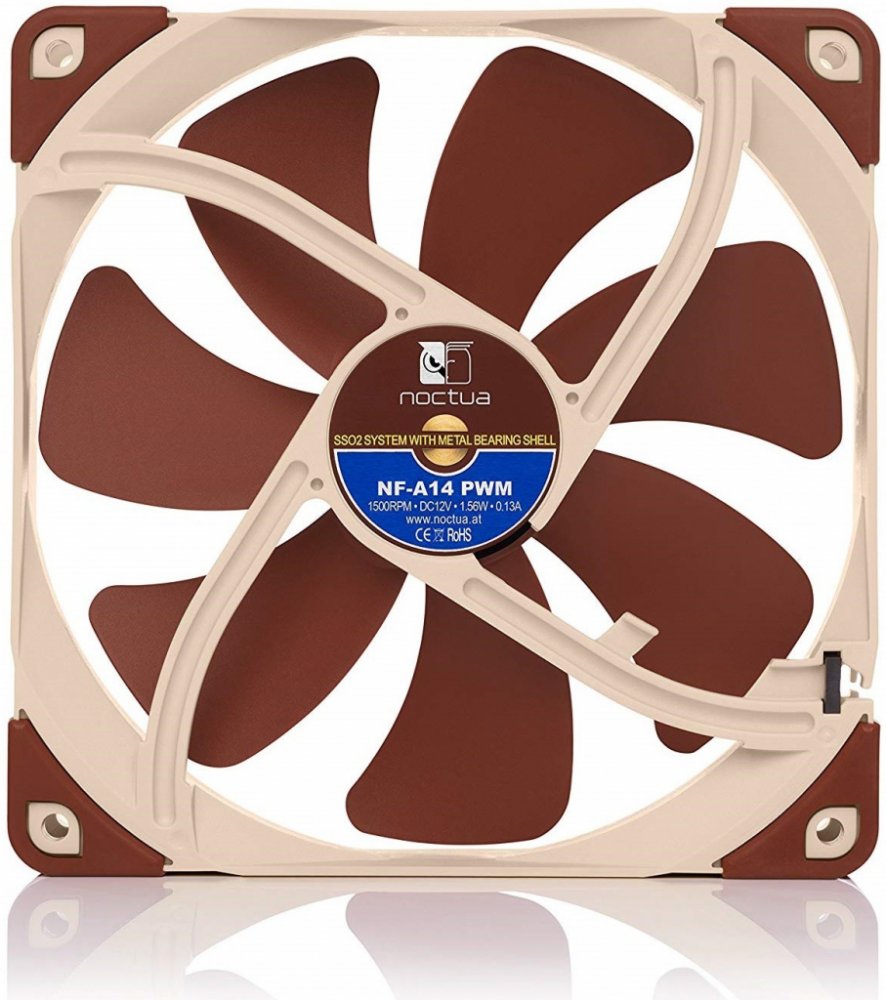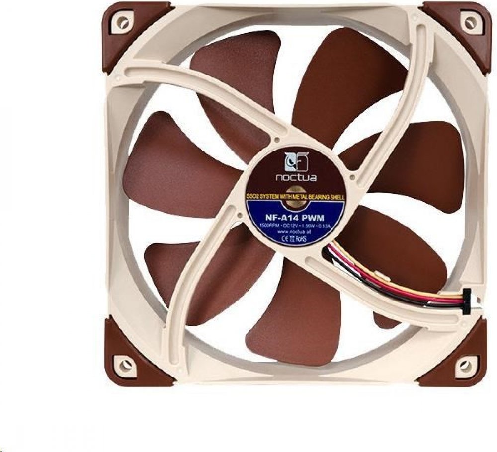 Špičkový ventilátor nové generace NF-A14 PWM. Je vybaven druhou generací osvědčených SSO ložisek a novou PWM IC technologií Smooth Commutation Drive (SCD) pro plně automatické řízení rychlosti otáček, tichý chod a malou spotřebu.