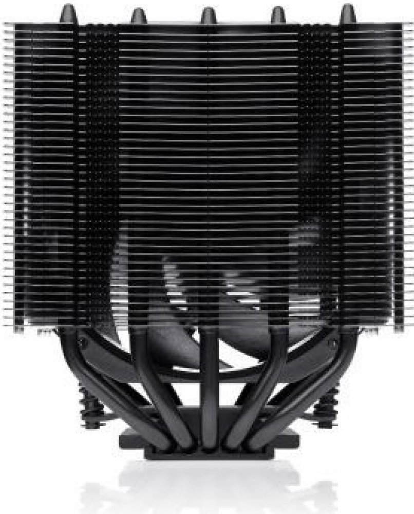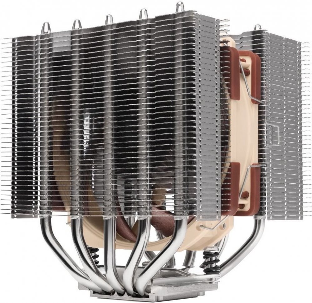 Ventilátor s kruhovým rámom NF-A12x25r PWM - Noctua NF-A12x25 predstavený v roku 2018 je všeobecne považovaný za najlepší 120 mm ventilátor na trhu. Variant s okrúhlym rámom použitý na NH-D12L poskytuje rovnako známy tichý chladiaci výkon, no zároveň umožňuje znížiť celkovú výšku chladiča bez rizika problémov s kompatibilitou s vysokými chladičmi alebo pasívami základnej dosky.