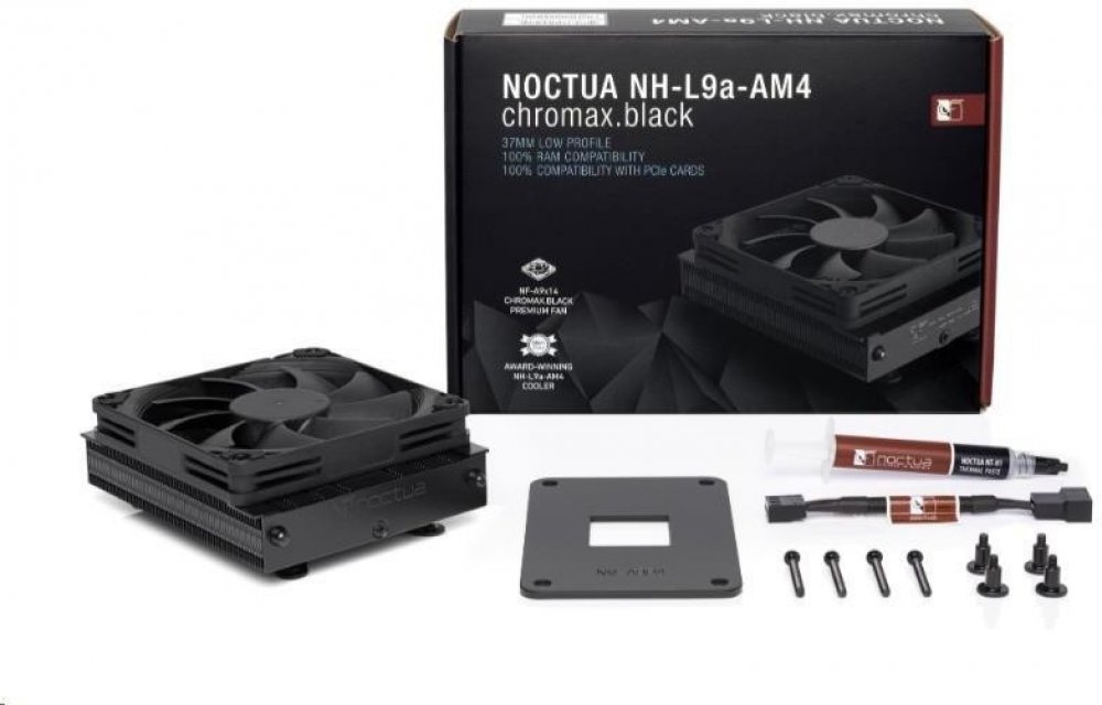 NH-L9a-AM4 chromax.black je celočerná verze oblíbeného, vysoce kompaktního a tichého nízkoprofilového chladiče NH-L9a-AM4, navrženého pro použití v nízkofaktorových kejsech a HTPC prostředí. Ačkoliv poskytuje vysoce kvalitní výkon, je nevhodný pro overclockery a doporučený pouze pro CPU/APU do 95W TDP. Navštivte stráky výrobce, http://noctua.at/en/nh_l9...
