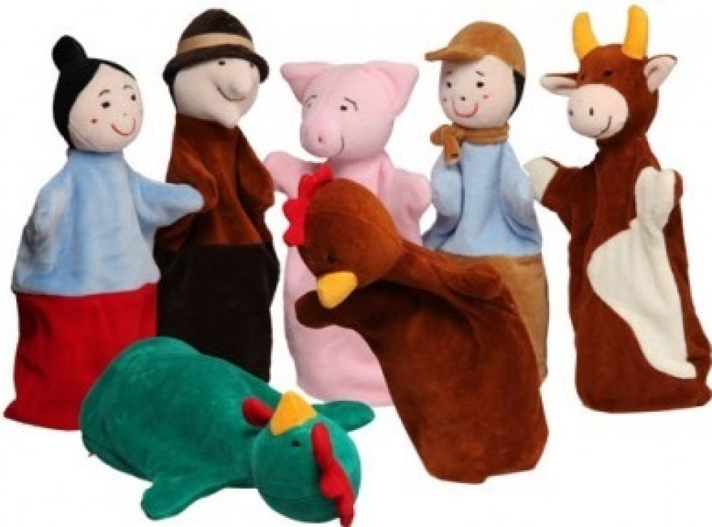 Sada O kohoutkovi a slepičce obsahuje jednoduché maňásky s dlouhou rukavicí - kohouta, slepici, prasátko, kravičku, švadlenu, ševce a sládka.