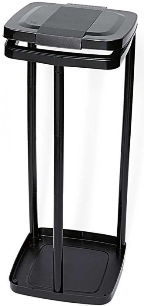 Držák – stojan na pytle na odpadky objemu 120 litrů (tzv. popelnice), s víkem, plastový – Nölle 00738600 Praktický stojan na uchycení odpadkových pytlů s vrchním víkem. Sáček se dovnitř snadno a rychle uchytí, po jeho naplnění se bez potíží vyndá ven. Možnost nastavení do 3 výšek, sklopné víko brání vylétávání odpadu ven. Ideální pro místa s velkou produkcí odpadu (servisy, dílny, průmysl, ale i venkovní slavnosti apod.). Upozornění: dodáváno bez pytlů (nutno dokoupit zvlášť). Technické parametry: - max. objem pytlů: 120 litrů - materiál: plast - maximální nastavitelná výška se zavřeným víkem: 74 cm - maximální nastavitelná výška s otevřeným víkem: 104 cm - rozměry víka a stojanu: 31 x 34,5 cm - rozměry otvoru koše: 25 x 25 cm Výška koše se dá nastavit kolíky (max. 4 na sebe). Jednotlivý