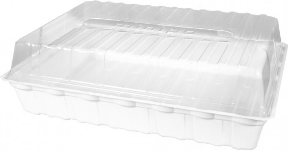 Minipařeniště se skládají ze základních dílů, tj. dna a čirého víka. Používají se pro výsevy rostlin, předpěstování sazenic či řízkování rostlin. Rozměr 47x20x6 cm, s ventilací. Dno je z pevného plastu. Součástí minipařeniště je plato s 24 buňkami.