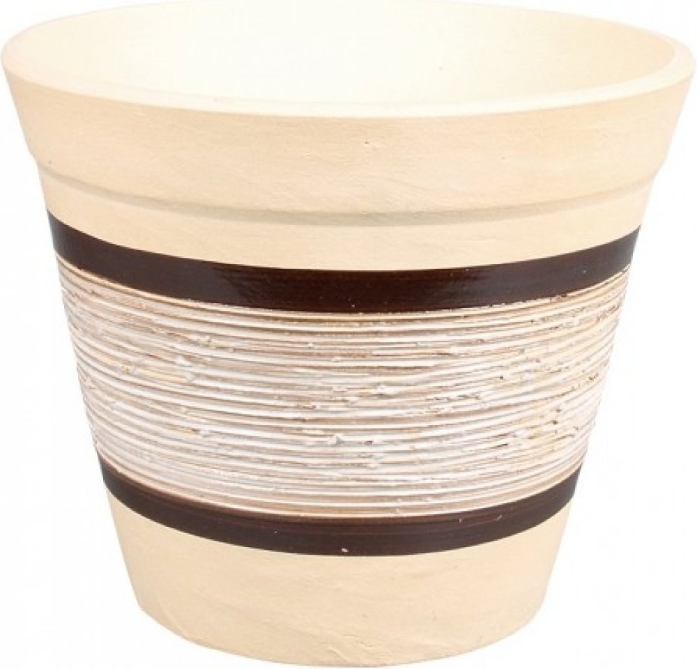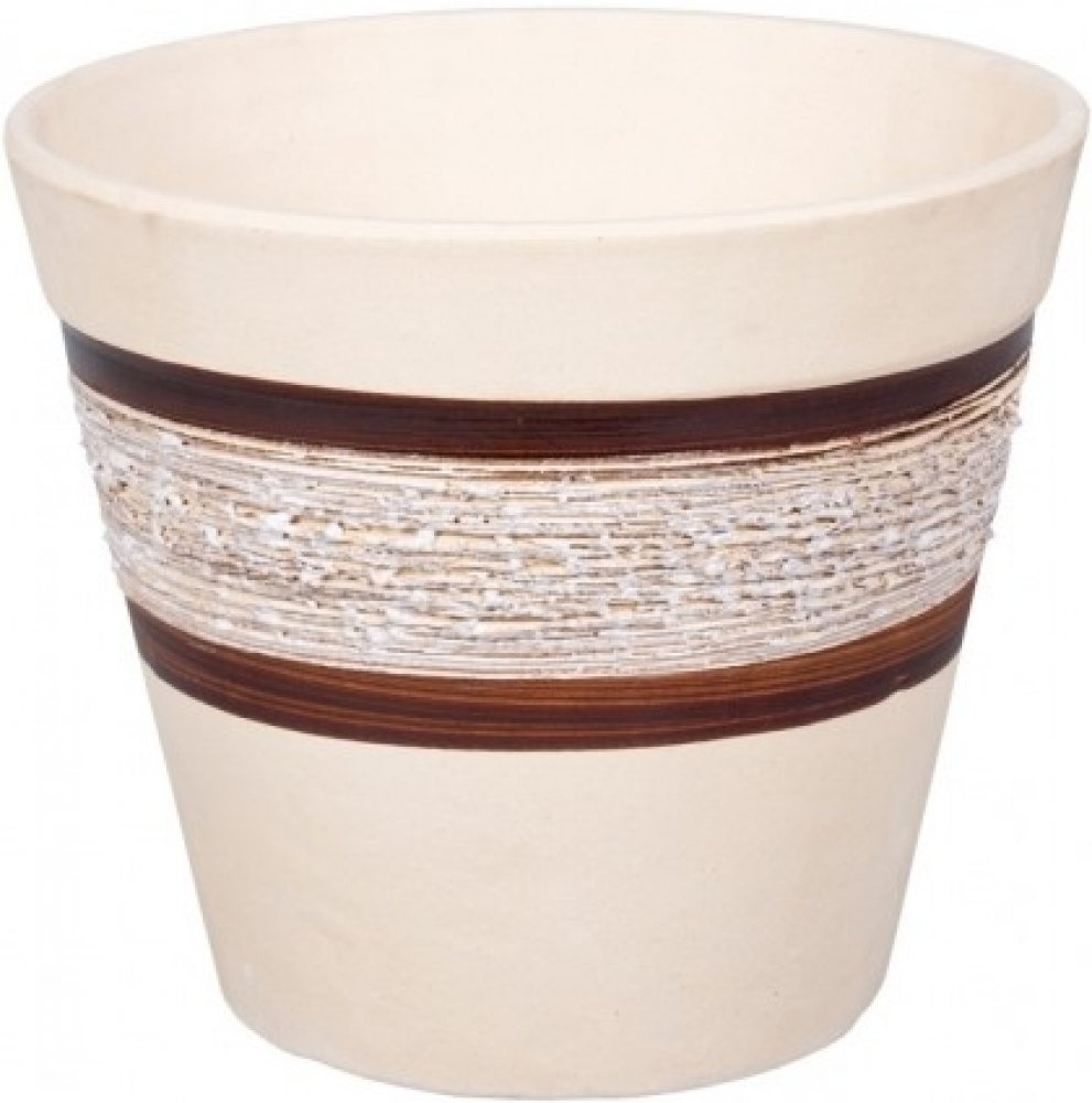 NG 053335bh Květník ASTREA přírodní kamenina d26cm 260x260x220Keramický béžový květník se zdobením po obvodu ve prostřed výšky. Vedou zde 2 hnědé glazované cca 1cm široké proužky, mezi kterými je bíle glazovaný pruh tvoření nepravidelnými vrypy po obvodu. Květník je vhodný do interiéru i exteriéru. Šířka: 26 cm, výška: 22 cm, výška: 26 cm. Vhodnou podmiskou je CAMPANULA, NG 053852hb.