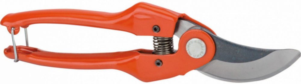 Tradiční zahradnické nůžky. Robustní provedení, pro veškeré prostřihávací práce. Rukojeti vyrobeny z lisované oceli. Dlouho trvající ostrost a čisté řezání s menším třením díky speciálně broušené čepeli. Snadnější přístup díky úzké řezací hlavě. Uzamykací mechanismus se svorkou. Kapacita střihu: 2 (20mm). Délka: 220mm. Váha: 310g.