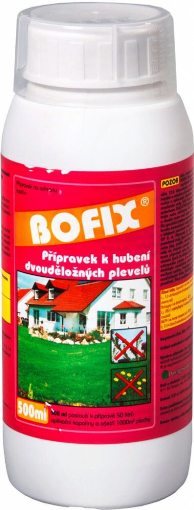 Bofix je velmi oblíbený selektivní herbicid určený k lividaci plevelů v trávnících. Působí likvidačně na dvouděložné plevele (jitrocel, smetánka, ptačinec žabinec, konopice, hluchavka, kopřiva, svlačec, penízek, ostružiník, jetel, lebeda, pcháč oset atd.). Nepůsobí na trávy. Jeho použití je vhodné také pro mladé trávníky. Má velmi rychlý účinek patrný už po několika hodinách. První seč po anti-ple...