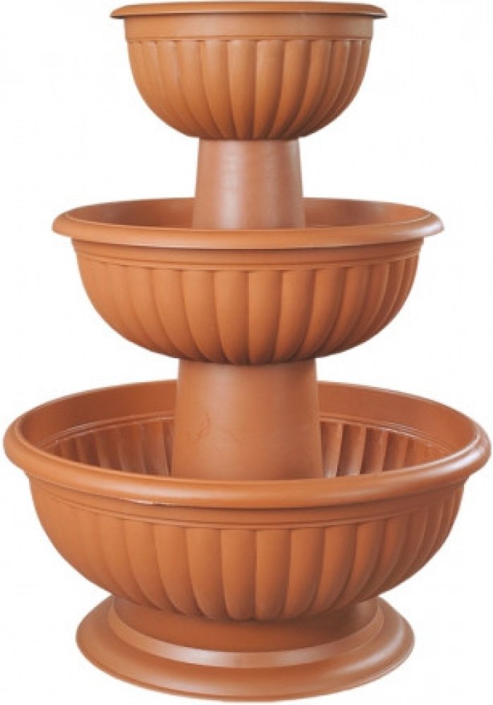 Plastová kaskáda v barvě terakoty. Kaskáda je složena ze tří číší v celkové výšce 57,5 cm. Používá se zejména v exteriéru na balkonové a jiné převislé rostliny. Možnost použítí i v interiéru.