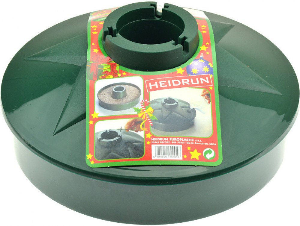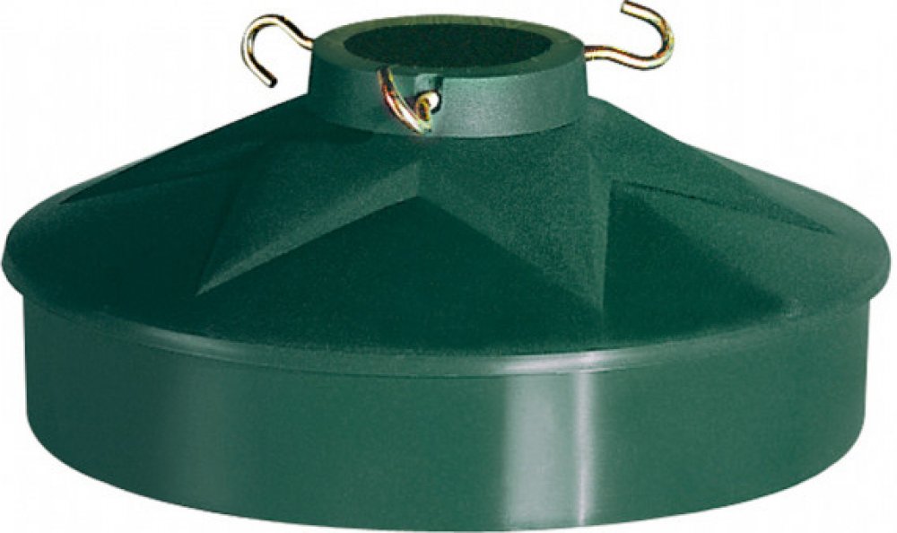 Plastový stojan na vánoční stromeček se 3 háčky pro upevnění kmene. Výška: 14 cm, průměr: 31 cm.