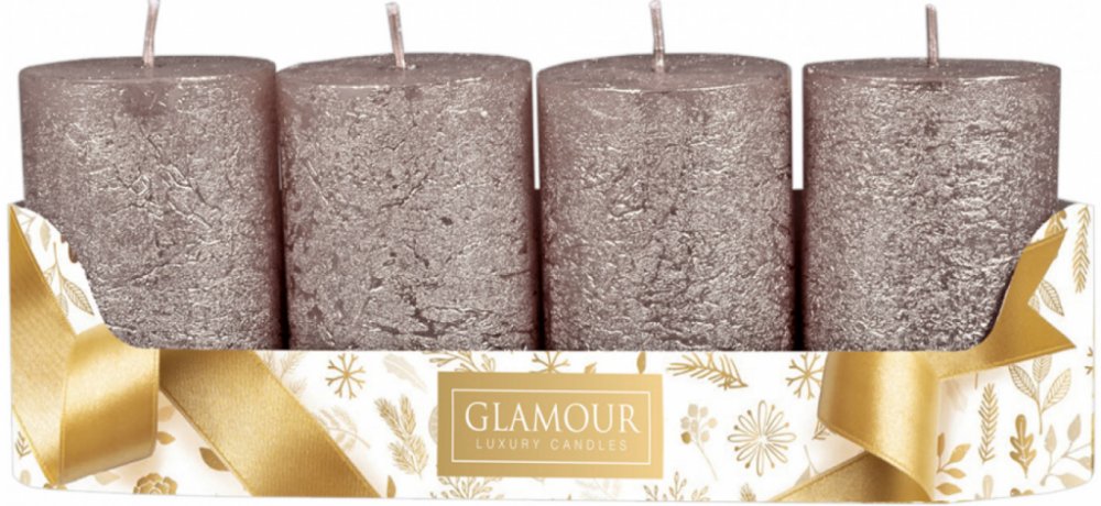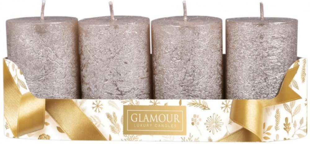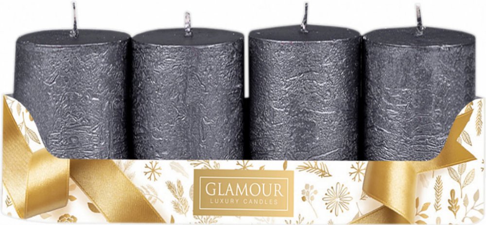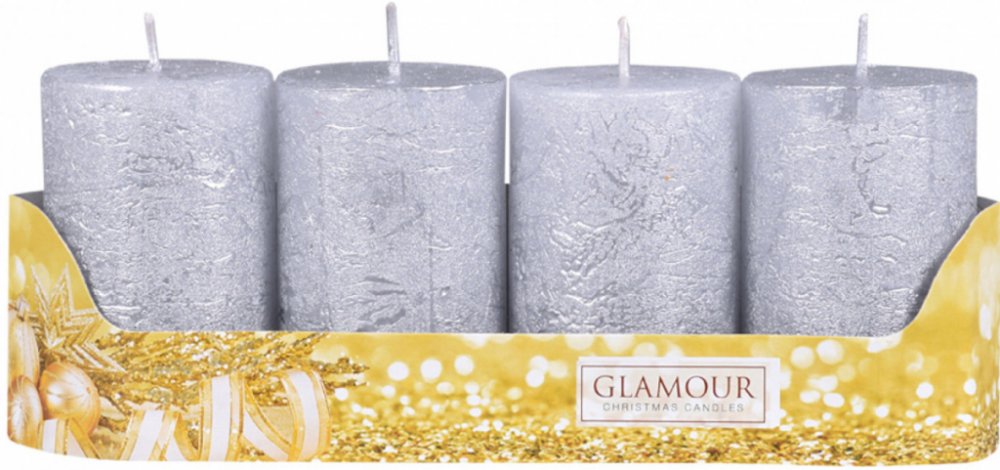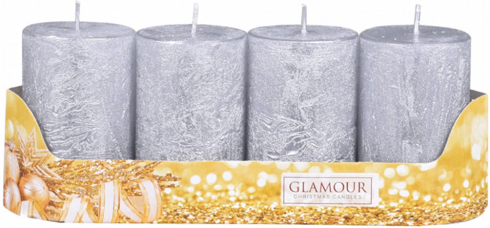 Rustikální adventní svíčky ve tvaru válce. Svíčky mají metalický povrch. Budou se vyjímat v moderním, dobovém i rustikálním interiéru. V balení jsou 4 kusy. Doba hoření: 21 hodin. Velikost svíčky: průměr 5cm, výška 8cm. Barva: stříbrná.