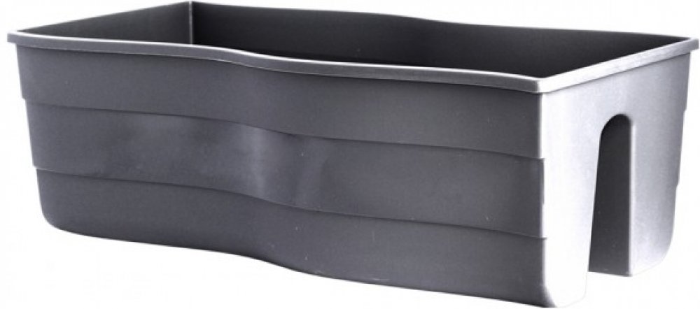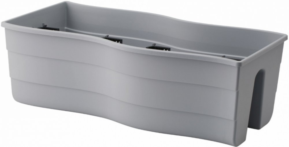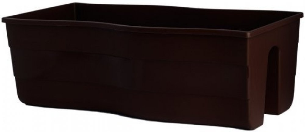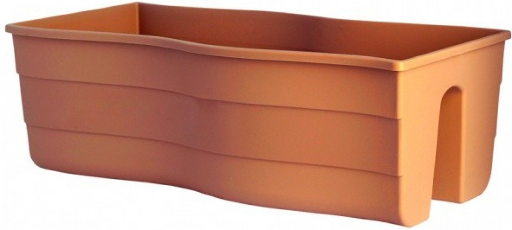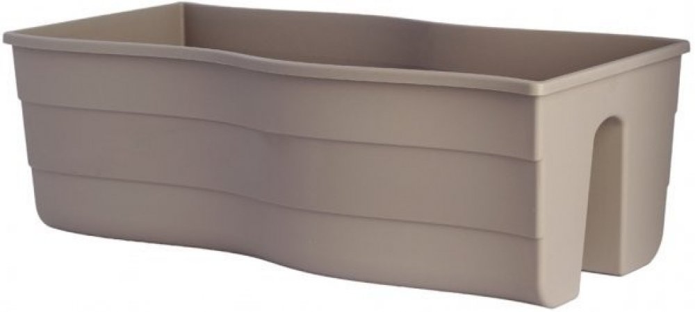 Plastový truhlík na zábradlí se zvlněnými okraji je matný a uprostřed je ozdoben lesklým pruhem. Barva: hnědo šedá. Šířka: 60 cm, výška: 20 cm, hloubka: 29 cm.