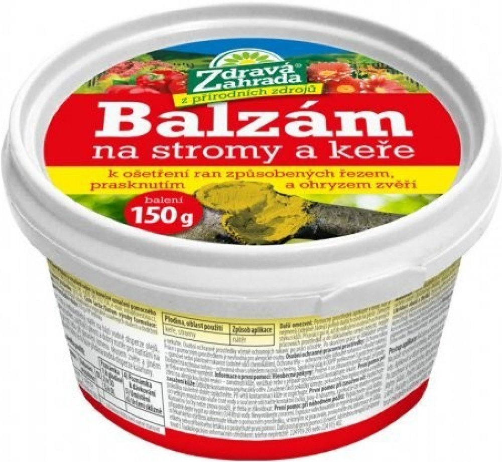 NG 9134_CCR Balzám stromový ZDRAVÁ ZAHRADA 150g 80x80x50Pomocný prostředek ve formě pasty je určený k ošetření ran rostlin (keřů a stromů). Jedná se o vodou ředitelný nátěr na bázi vodné disperze olejů, plněný mletým přírodním vápencem a mastkem, zajištující plnost a dobrý roztěr pro natírání na kmeny. Slouží k ošetření kmenu po řezu nebo při poranění kmenu okusem zvěře a jiném možném poškození. P...