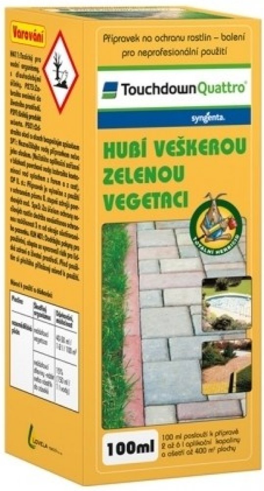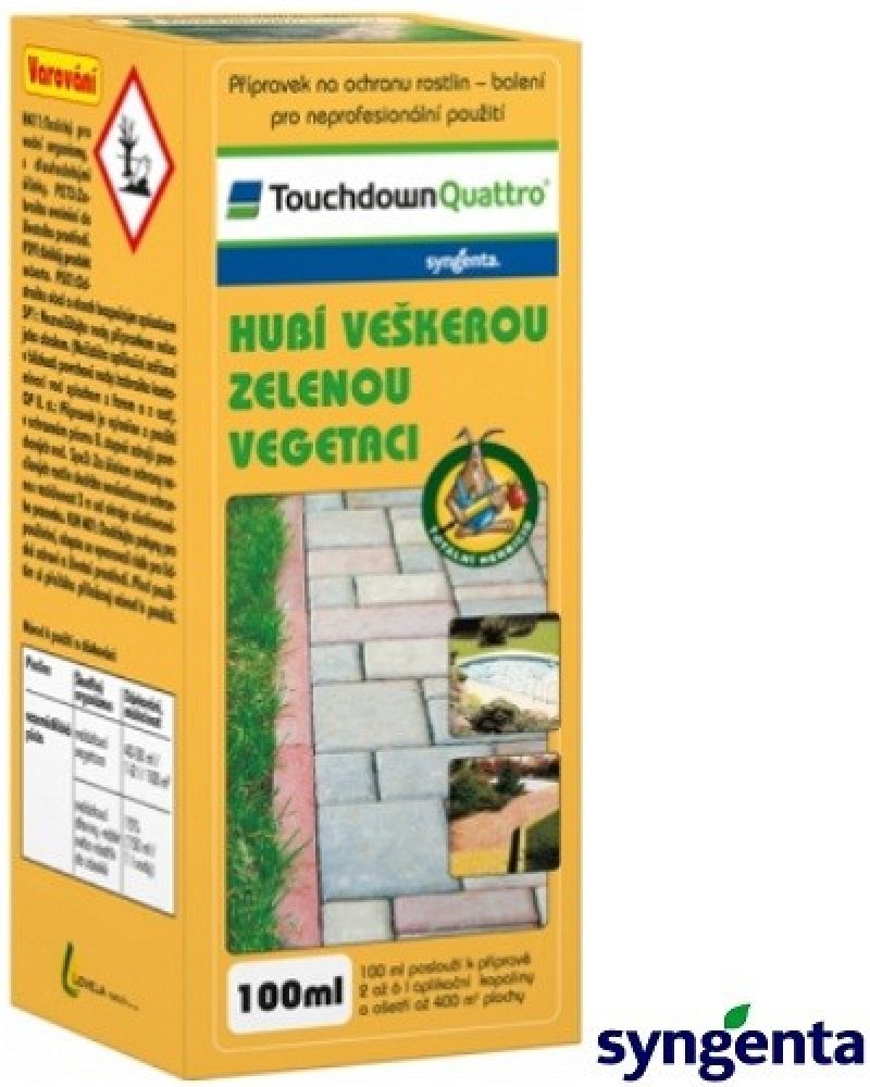 - Touchdown Quattro obsahuje účinnou látku glyphosate, která je přijímána listy.