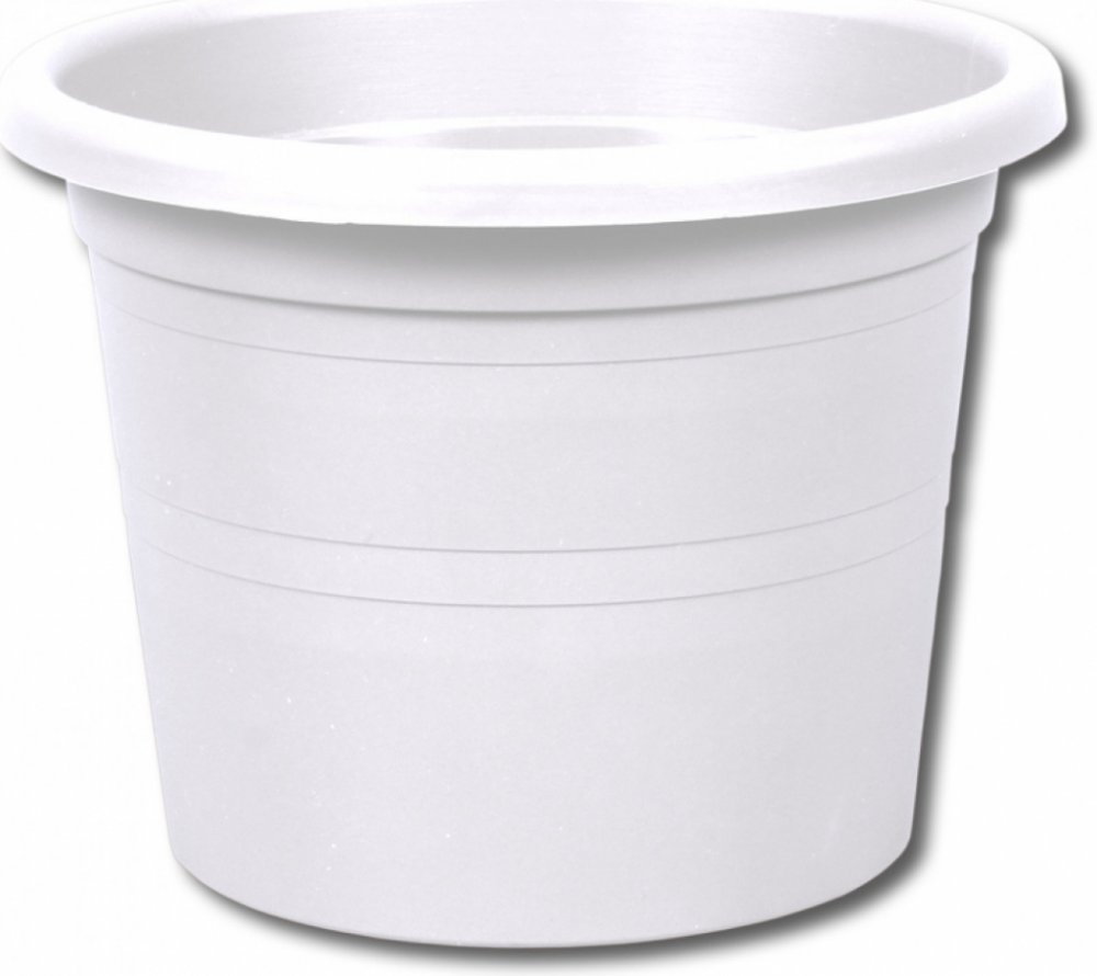 Plastový květník kruhového půdorysu vhodný k osázení rostlinami.