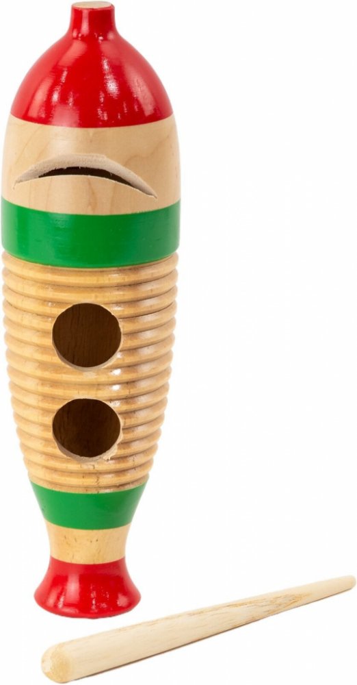 Tradiční perkusní nástroj používaný v latinsko-americké hudbě. Atraktivní a barevný rybí design je oblíbený u dětí a zvyšuje nadšení pro učení hry na perkuse.Tvar ryby se mimořádně lehce drží a spolu s dřevěnou konstrukcí s dlouhou životností se jedná o velmi kvalitně zpracované guiro. Jeho velký design s otvory a žebrované duté tělo vytváří jasné tóny. Hraje se na něj jednoduše pomocí přiložené paličky buď boucháním, nebo mnutí paličky o žebrovanou část.