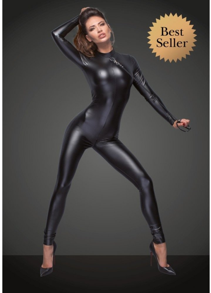 Noir Handmade F162 Powerwetlook Overall with Leash and Two-way Zipper Velikost S