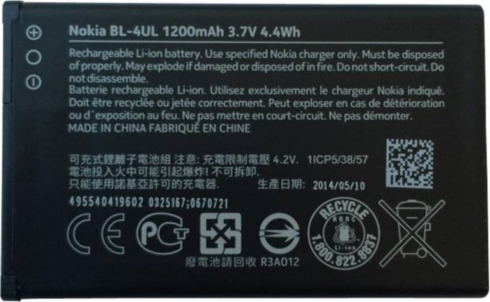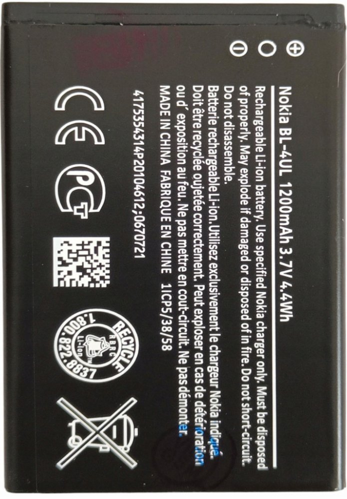 Originální náhradní baterie na mobilní telefony značky Nokia BL-4UL pro NOKIA 225, NOKIA 225 DUAL, Li-ion 1200 mAh.