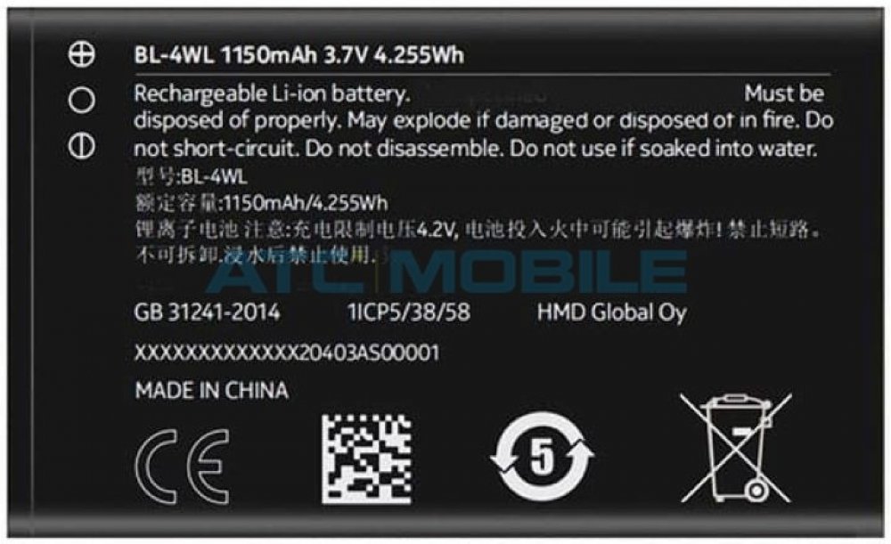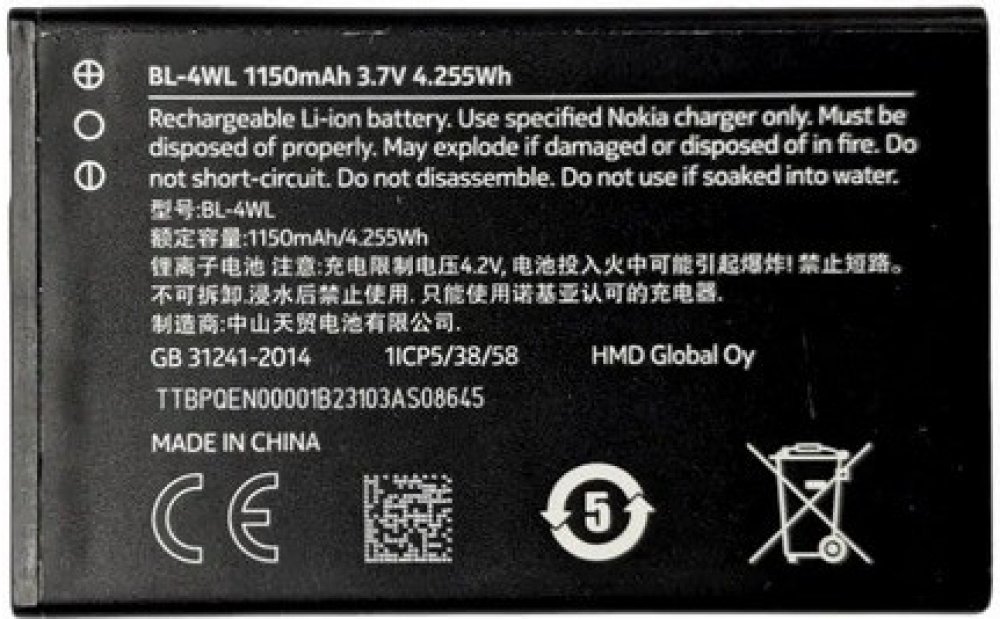 Originální baterie Nokia je vhodná pro mobilní telefony Nokia 215 4G (2024), Nokia 220 4G, Nokia 225 4G, Nokia 230, Nokia 3310 (2017), Nokia 5310 (2020), Nokia 6310 (2021).