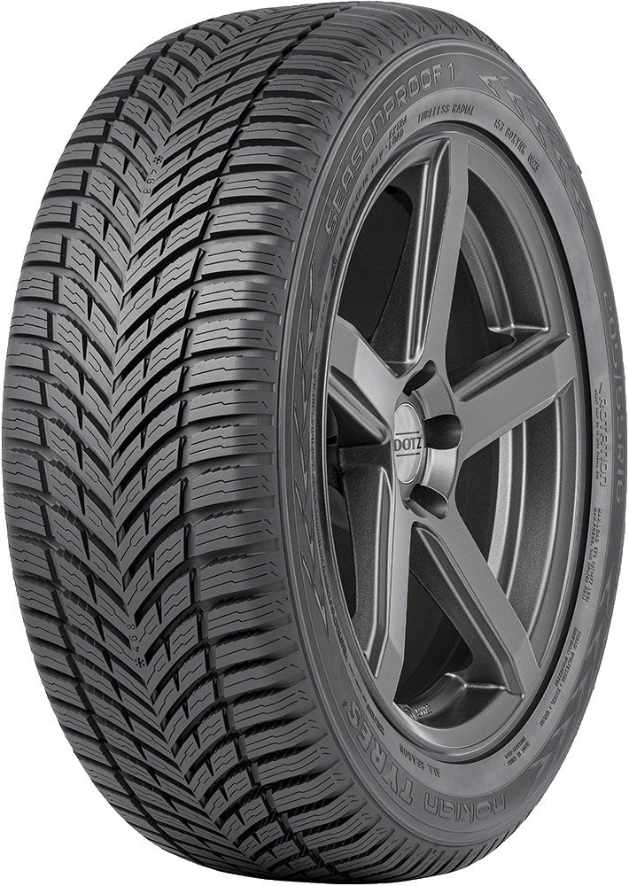 # Nokian Seasonproof 1 ## Univerzální bezpečnost a výkon po celý rok Nokian Seasonproof 1 je ideální volbou pro řidiče, kteří hledají spolehlivé pneumatiky na celý rok. Tato all-season pneumatika zajišťuje vysokou úroveň bezpečnosti jak na zasněžených a mokrých cestách, tak i za letních podmínek. Díky vyváženému výkonu nabízí jistotu a pohodlí každý den v roce. ## Proč zvolit Seasonproof 1? Tato pneumatika je navržena tak, aby poskytovala dlouhou životnost a efektivní jízdu. Zlepšený odpor proti opotřebení a nízký odpor valení přispívají ke snížení spotřeby paliva a zvyšují ujeté kilometry. To z ní činí ekonomicky výhodné řešení pro každodenní jízdu. ## Výjimečný výkon na mokru a při dešti Pneumatika zaručuje vynikající adhezi na mokrých površích a efektivně odolává aquaplaningu. Díky tomu zůstává řízení přesné a stabilní i při intenzivním dešti, což zvyšuje bezpečnost v nečasech.