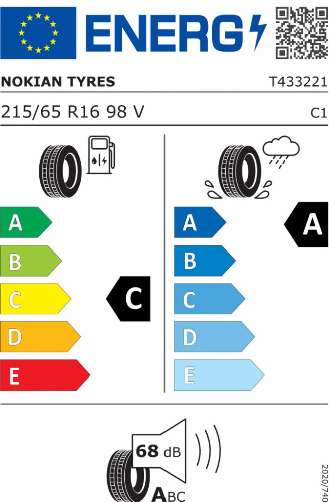 V (=240 km/h) 215 R16 65 98 letní Nokian Tyres 68 dB A C A C 1834600