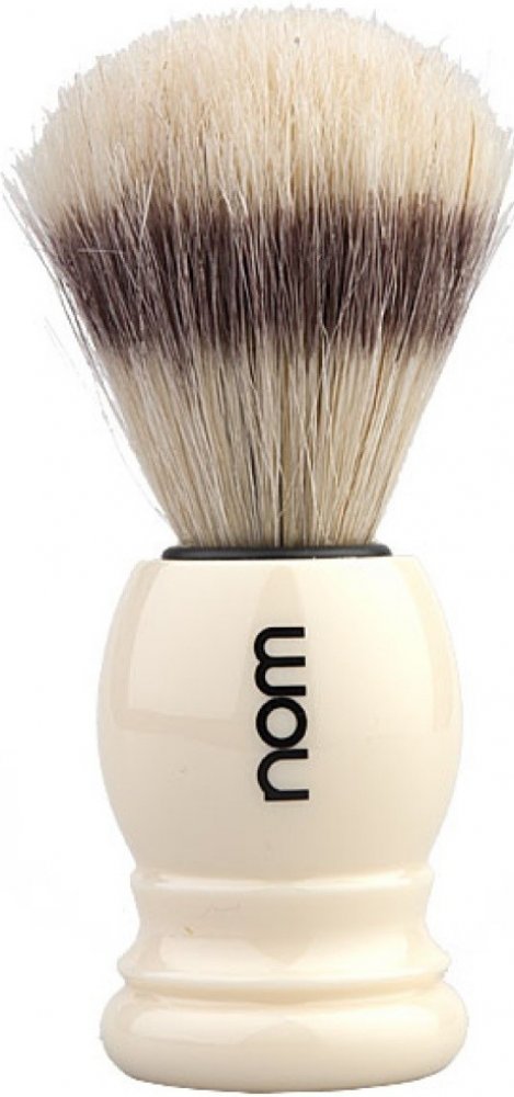 Tato stylová štětka na holení je levným řešením pro pohodlné holení. Plastová rukojeť imituje slonovou kost a vlákna jsou tvořena kančími štětinami. Tyto štětiny jsou sice tvrdší než jezevčí, ale za to poskytují silnější masážní účinek při holení. materiál rukojeti: plast materiál vláken: kančí štětiny průměr uzlu: 21 mm NOM Vkusné, funkční a za rozumnou cenu - holicí štětky NOM jsou šikovné, nestojí majlant a mají dlouhou životnost. Vysoce kvalitní plasty a nejlepší evropské dřevo jsou zde kombinovány se všemi oblíbenými barvami: rukojeti se dodávají ve třech různých moderních barvách. Hlava štětky je vyráběna z jezevce nebo ze systetického černého vlákna. Produkty jsou vyráběny v Německu a používají jen nejúčinnější technologii. Vyrábí se pro ty nejelegantnější pány od Stockholmu až po St. Louis.