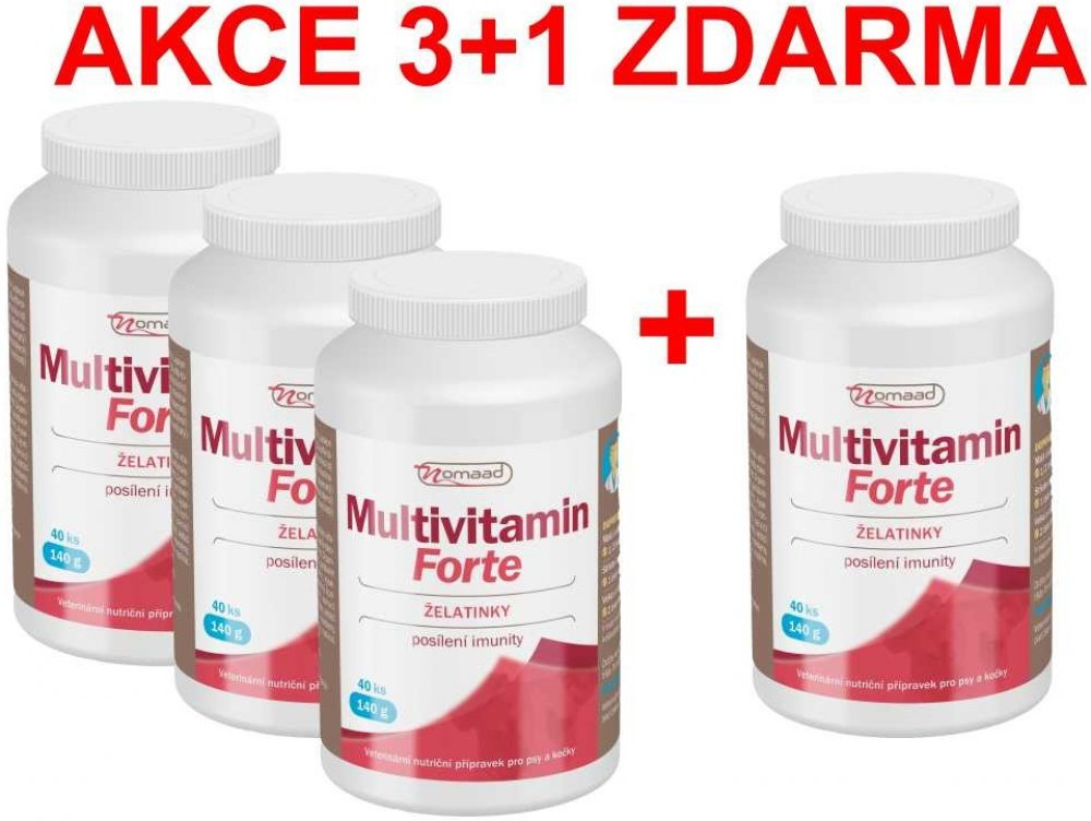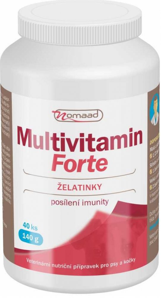 Nomaad Multivitamin Forte je vhodný u fyzicky zatěžovaných zvířat, v období březosti, pro zlepšení fyzické a psychické kondice u starších psů a koček. Významně také zlepšuje kvalitu a lesk srsti.