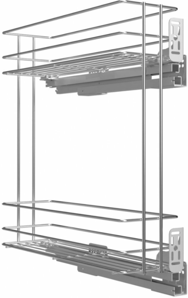 Praktický boční výsuvný drátěný koš určený pro skříňky o šířce 150 mm v pravém provedení. Moderní kombinace barev bílá, chrom, stříbrná a šedá perfektně ladí s různými styly kuchyní. Robustní provedení a kvalitní výsuv zajistí pohodlné používání a dlouhou životnost.