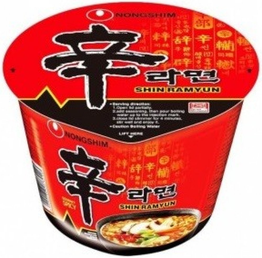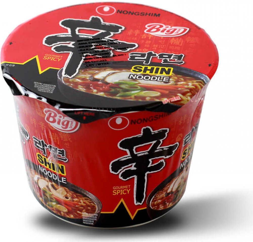 Ikonická chuť: Shin Ramyun je jedním z nejpopulárnějších instantních ramen na světě, známý svou sytou a intenzivní pikantní chutí hovězího vývaru. Bohatý vývar: Díky sušeným houbám Shiitake a zelenině má polévka bohatou a hlubokou chuť. Pohodlí kelímku: Balení v kelímku umožňuje rychlou a snadnou přípravu, což je ideální pro jídlo na cestách.Nudle (88%): Pšeničná mouka, bramborový škrob, palmový olej, sůl, směs (hydrolyzovaný rostlinný protein (sója), kvasnicový extrakt), regulace kyselosti (E500, E501, E339), antioxidant (E306), emulg zeleného čaje, barvivo.Kořenící prášek (12%): Koření hydrolyzovaný rostlinný protein (sója), maltodextrin, kvasnicový extrakt, sůl, ředkvička, pšeničná mouka, koření (maltodextrin, pepř, červená chilli paprička, sůl, chilli extrakt), zvýrazňovače chuti cukr, shiitake, glukóza, bramborový škrob.Zeleninové houbové vločky (2%): Texturovaný rostlinný protein (sója, pšeničný lepek), cibule, shiitake, mrkev, pak-choi, červená chilli paprička.Výrobek obsahuje pšeničnou mouku a sóju.Může obsahovat stopy ječmene, korýšů, vajec, ryb, arašídů, mléka, celeru, hořčice, sezamových semen a měkkýšů.Energie: 1834 kJ / 436 kcalTuky: 14 g, z toho nasycené mastné kyseliny 6,8 gSacharidy: 69 g, z toho cukry 4,5 gBílkoviny: 8,4 gSůl: 3,6 gUpozornění: Tento produkt není určen pro přípravu v mikrovlnné troubě.Otevřete víčko do poloviny.Přidejte kořenící prášek a zeleninové vločky.Nalijte vařící vodu do kelímku až po vyznačenou vnitřní čáru.Víčko zavřete a nechte odstát 3 minuty, dokud nudle nezměknou.Dobře promíchejte a ihned podávejte.