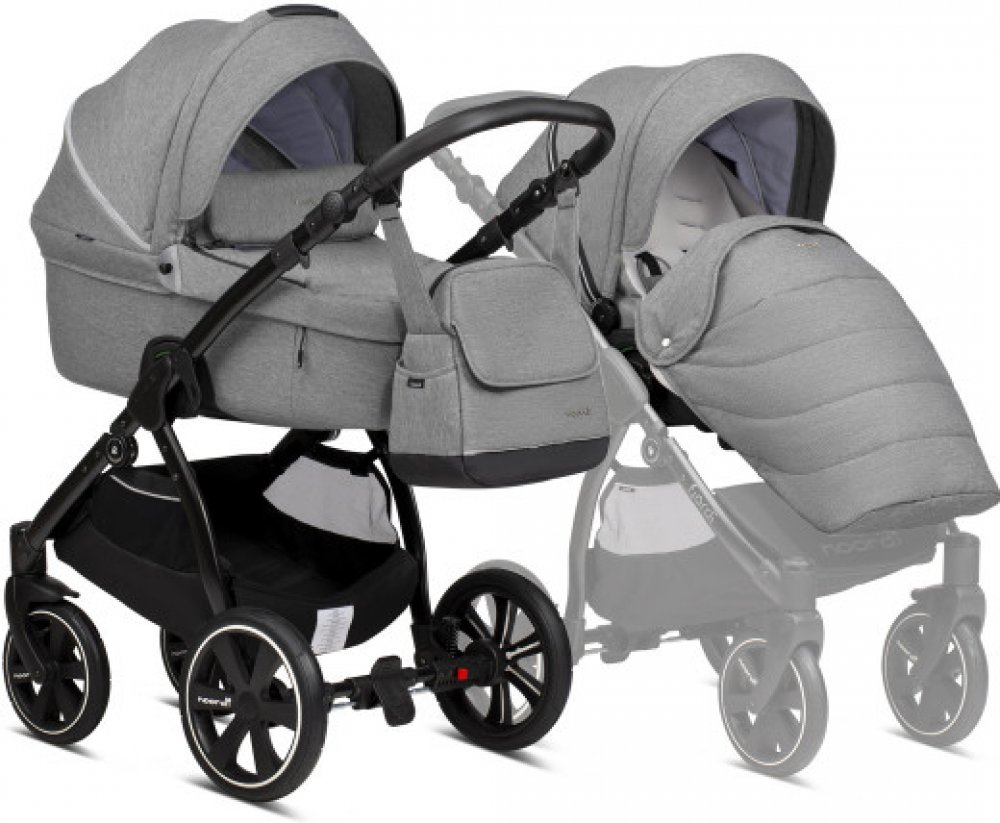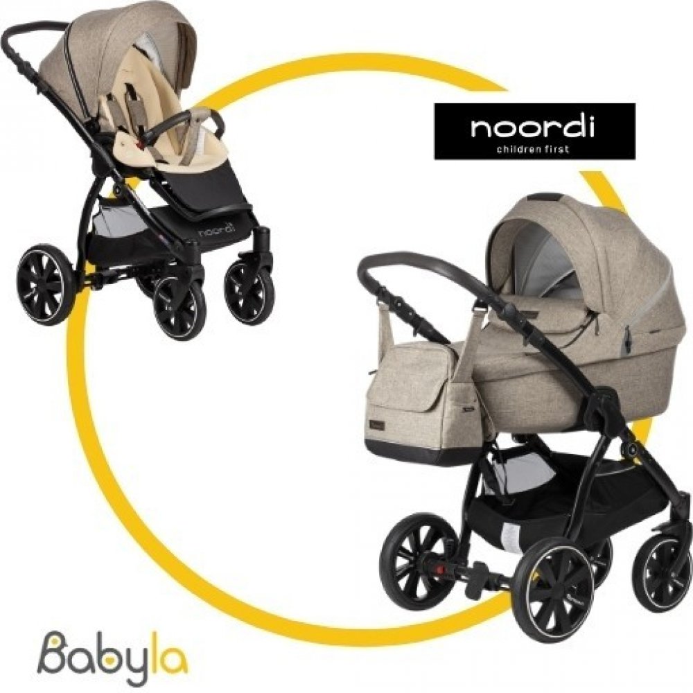 Kočárek Noordi Fjordi je inspirovaný kulturou a životním stylem ve Skandinávii - dokonale chrání dítě před větrem i deštěm. Podvozek spolehlivý a kompaktní hliníkový podvozek se snadným systémem skládání otočná přední kola s aretací kvalitně odpružená přední i zadní kola foukaná všechna 4 kola výškově nastavitelná rukojeť potažená eko kůží nožní brzda zadních kol Hluboká korba lehká korbička s držadlem pro přenášení korbičku možno umístit po i protisměru jízdy vnitřní potah ze 100% bavlny možnost nastavení větrání ve spodní části korbičky vyjímatelná kokosová matrace nastavitelná opěrka zad pod matrací korbičky stříška s možností větrání zateplený nánožník se zipem pro snadný přístup k dítěti integrovaná síťka proti hmyzu při položení korbičky bez podvozku na podlahu umožňuje korbička houpání nebo naopak pevnou polohu Sportovní sedačka lehká sportovní sedačka sedák možno umístit po i proti směru jízdy nastavitelné odnímatelné madlo zateplený nánožník s možností připevnění k madlu nastavitelná opěrka zad i nohou barevně sladěná textilní sedací podložka s měkkým polstrováním a otvory pro cirkulaci vzduchu pod tělem dítěte 5-ti bodový bezpečnostní pás maxi stříška s možností větrání chrání dítě před povětrnostními vlivy a slunečním zářením Přebalovací taška praktická a prostorná přebalovací taška s termoizolační kapsou a s možností zavěšení na rukojeť kočárku možnost nošení přes rameno i na zádech jako batoh Set obsahuje: podvozek NOORDI Fjordi II + sportovní sedačku + hlubokou korbu + přebalovací tašku + držák na pití + velký nákupní košík + pláštěnku + integrovanou moskytiéru.