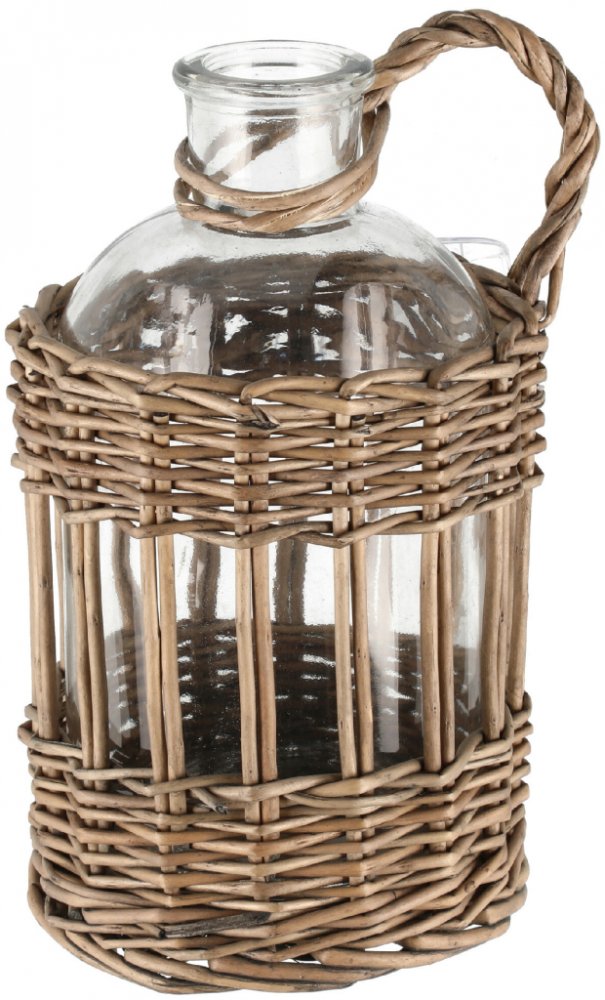 Stylový design: Skleněná láhev s proutěným úchytem je elegantní doplněk, který vnese do vašeho interiéru přirozené kouzlo. Její transparentní barva zajišťuje, že se dokonale hodí k různorodým aranžmá.