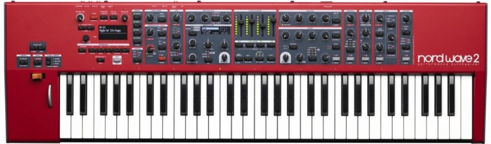 Syntezátor Nord Wave 2 je vysoce výkonný syntezátor vhodný na live perfomance a studiová session disponující virtuálním analogovým syntezátorem, samplérem, FM a Wavetablem s intuitivním interface rozhraním. 48 hlasá polyfonie a inovativní vlastnosti navržené dle nejmodernější trendů dělají z Nord Wave 2 univerzální nástroj, který nadchne jak klavírní hráče, tak i nadšence do elektronické hudby, jenž hledají do svých tracků zvuky z jiné planety či vesmíru. Nejuniverzálnější nástroj od NordNord Wave 2 obsahuje čtyři nezávislé syntezátory, kdy každý disponuje vlastním intuitivním ovládacím panelem a přehledným OLED displejem pro snadné nastavení. Syntezátory nabízí širokou paletu zvuků a samplů, takže můžete nechat svojí kreativitě zcela volný průběh a ničím se nemusíte omezovat. Pracovní sekceTento panel je tvořen základními ovladači a fadery s jejichž pomocí kontrolujete a řídíte základní funkce syntezátoru Nord Wave 2, tj. Volume, EQ, mixing atd. Panel vám také umožní míchat poměry mezi jednotlivými syntezátory prostřednictvím režimů Focus, Pan Control, Solo a Multi-editing. Prostřednictvím sekce Group můžete zase zpracovávat nastavení funkcí FIlter, Envelope, Arpeggiator a nastavení efektů. Oscilátorová sekceSrdcem Nord Wave 2 je již zmíněná čtveřice syntezátorů, jejichž společná nastavení a parametry uvládáte právě pomocí této sekce. Analog vám nabízí klasické analogové zvuky rozšířené o bohaté harmonie a modulační efekty. Samples vám zase nabídne širokou paletu samplů ze zvukové knihovny Sample Library, kde naleznete nespočet hudebních nástrojů od smyčců, přes kytary až po bicí či perkusní nástroje. Wavetable obsahuje mnoho zvuků a pokrývá širokou škálu tonálních charakteristik. Posledním syntezátorem je FM, který vás provede všemi možnými harmoniemi a nabízí konfiguraci na 2-4 operátorech. Filtry, zesilovače & LFOV sekci filtrů máte na výběr až šest typů včetně ohromující emulace tranzistorového filtru z legendárních Nord Mini. Envelope zase disponuje nastavením rychlosti či invertovaným režimem. LFO vás potom může ohromit synchronizováním rychlostí v režimu Master Clock. Amp je vybaven ADSR technologií, takže váš zvuk dostane ještě větší drive. Impulzivní morfováníSyntezátor obsahuje širokou škálu morfovatelných parametrů, které můžete ovládat prostřednictvím Velocity, Aftertouch, Control Wheel nebo pedálem. Přiřazení zdroje ovládaní k jednotlivým syntezátorům je velmi jednoduché a intuitivní funkce Impulse Morph vám umožní okamžitě změnit jakýkoli parametr vašeho zvuku během hraní. Pokročilý polyfonický arpeggiátor a GATENord Wave 2 nabízí vykonný arpeggiator a polyfonický režim s přednastavenými patterny, které se načtou ihned při držení jednotlivých kláves. Novinkou je režim GATE, jenž vám vytvoří úderné staccato a vaše rozklady tak dostanou zcela nový rozměr. Efektová sekceDalší zcela oddělenou sekcí jsou populární efekty, naleznete zde modulární efekty (Tremolo, chorus atd.), Delay (Ping Pong, Pan, Tap Tempo), Reverb (Booth, Room, Stage, Hall a nový Cathedral) a mnoho dalších skvělých efektů, které obohatí váš zvuk a zaručí vám, že vaše hra bude autentická a ojedinělá.