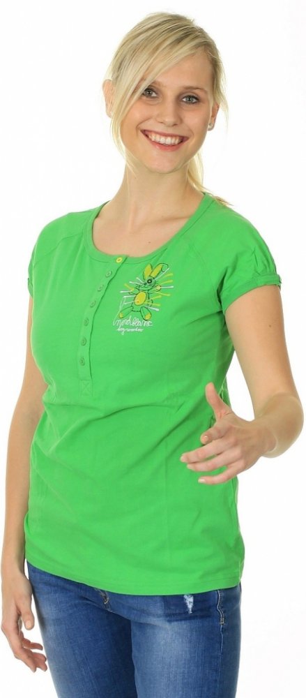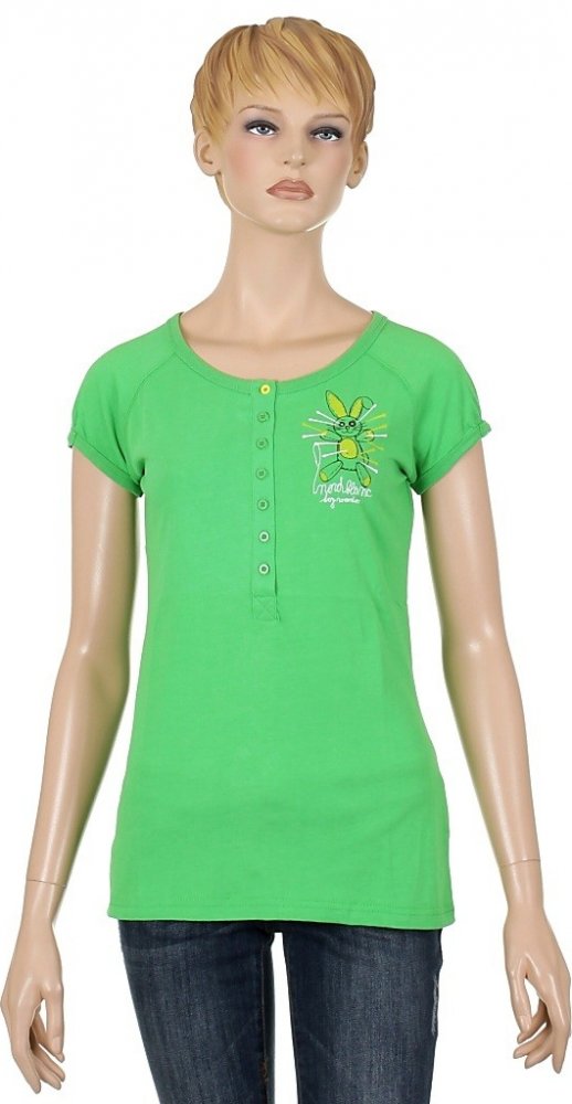 Zelené dámské tričko s krátkým rukávem, zapínání u krku na knoflíky.