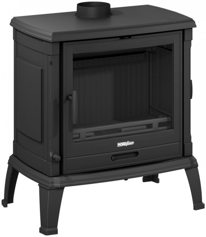 Nordflam 13 kW 150 mm 175 kg 77.3 cm 77.3 cm 50 cm 49.3 cm litinová černá horní i zadní