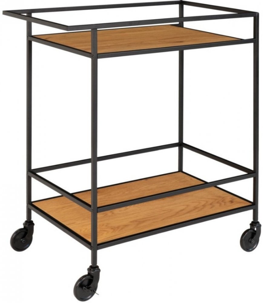 Univerzální dubový odkládací vozík Winter zaujme svým jednoduchým průmyslovým vzhledem. Vozík má víceúčelové využití jako barový stolek při oslavě, servírovací vozík nebo jen prostor pro dekorace a květiny. Příjemným bonusem jsou kovová kolečka, díky nimž lze vozík snadno přemisťovat. Své místo najde v moderním prostředí.