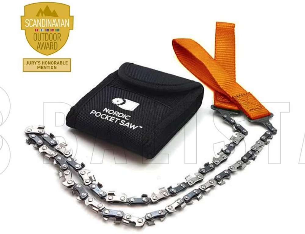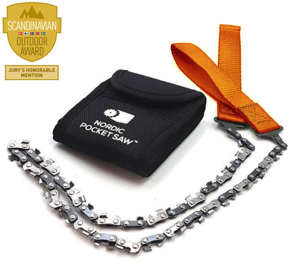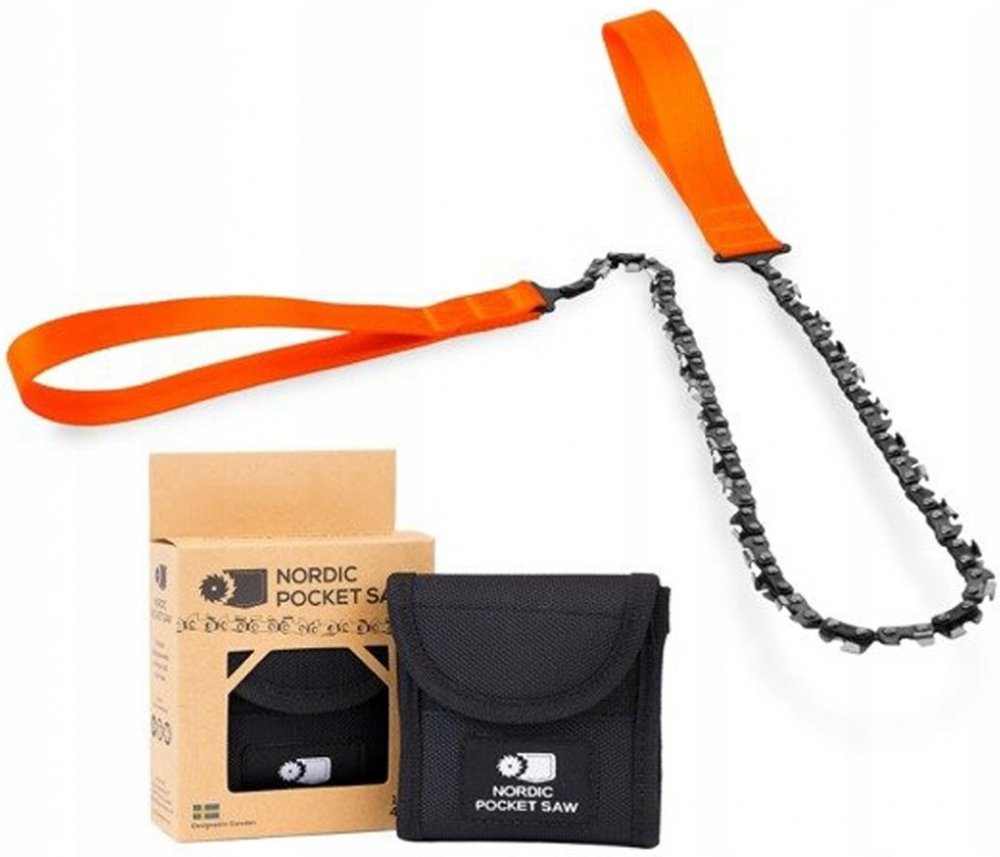 Extrémně výkonná, lehká a super skladná kapesní řetězová pila Nordic Pocket Saw navržena pro náročné outdoorové aktivity v drsných podmínkách. Kapesní pila Nordic Pocket Saw byla vyvinuta pro snadné použití při outdoorových a výpravách. Řetěz vyrobený z tepelně zpracované uhlíkové oceli má dvojité oboustranně broušené řezné zuby na každém hlavním spoji, díky čemuž poskytuje účinné řezání bez námah...