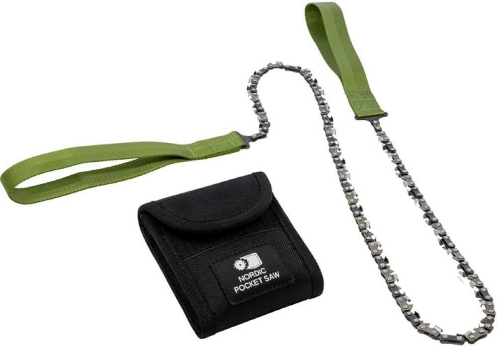 Kapesní řetězová pila Nordic Pocket Saw X-LONG pro dvě osoby. Nordic Pocket Saw je mimořádně praktická, výkonná a lehká kapesní řetězová pila - varianta pro 2 osoby významně urychlí řezání i větších polen a klád. Pila Nordic Pocket Saw je skvělým pomocníkem při všech vašich výpravách. Řetěz má délku 93 cm a je vyrobený z tepelně zpracované uhlíkové oceli, extrémní účinnost v obou směrech tahu zaji...