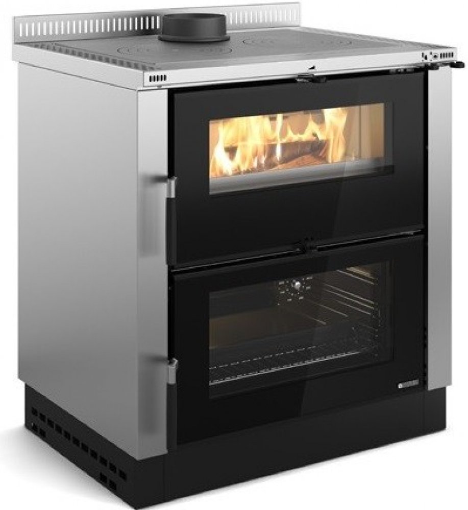 Verona XXL, Nordica - Dvouplášťový sporák s troubou pod topeništěm. Externí plášť v barvě černé a nerez. Unikátní provedení s troubou dole pod ohništěm má mnoho výhod. Pro vaření - plotna blízko ohniště má vysokou teplotu, při přepnutí na troubu jdou spaliny boky dolů, kde rovnoměrně ohřívají prostor na pečení, termostaticky řízený přívod vzduchu rovnoměrně topí a šetří palivo. Sporák je možné tak...