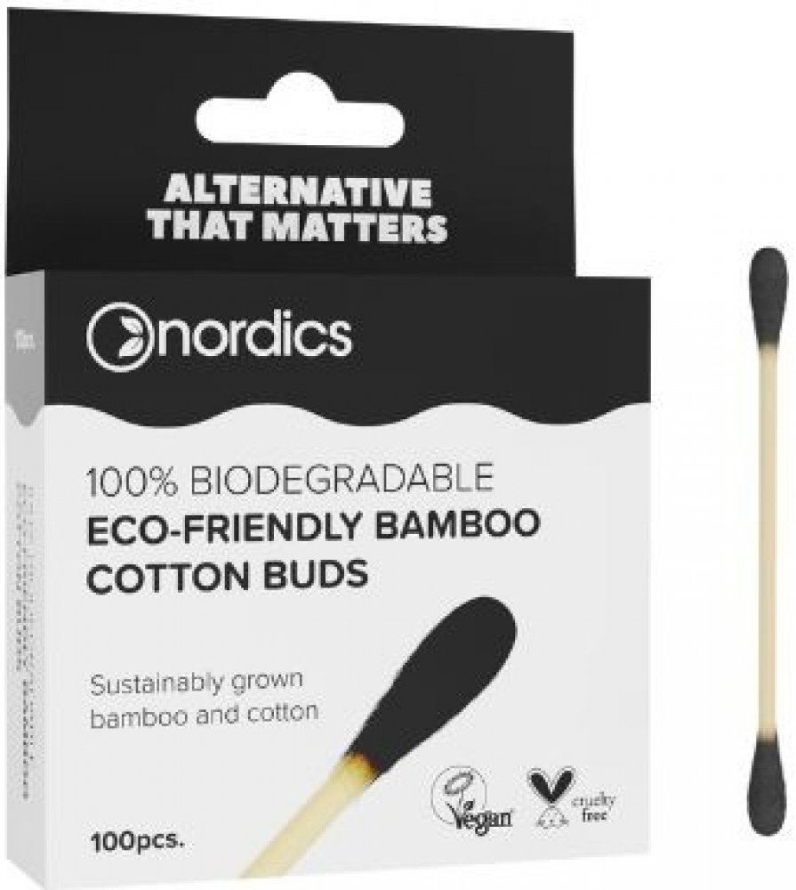 Nordics Oral Care Bambusové vatové tyčinky do uší černé 100 ks