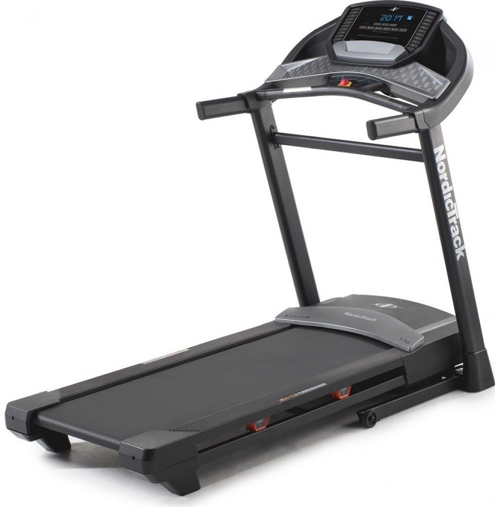 Běžecký trenažér NordicTrack T7.0 NORDICTRACK T7.0 je ideální běžecký trenažér určený do domácností pro pravidelný trénink. Nabízí masivní rám s nosností do 125 kg, silný motor s trvalým výkonem 2,02 kW (2,75 HP) a především také prostornou běžeckou plochu s rozměry 51 x 140 cm. To vše zaručuje maximální komfort při běhání a jistotu dlouhodobé spokojenosti při pravidelném používání. Elektronicky nastavitelný sklon do 10%, či rychlost do 20 km/h můžete nastavit přes klasické tlačítka na počítači, případně přes přednastavená tlačítka Počítač má multifunkční podsvícený LCD displej s držákem na tablet, který se snadno ovládá a zobrazuje všechny běžné hodnoty. Vyobrazené parametry na displeji jsou: rychlost, čas, vzdálenost, kalorie, sklon a hodnotu tepové frekvence (pomocí dlaňových snímačů, či hrudního BLUETOOTH pásu, který není součástí balení). U trenažérů značky NORDICTRACK můžete využívat placené tréninkové aplikace iFIT. Tuto aplikaci připojíte k vašemu trenažéru přes systém BLUETOOTH. Díky této aplikaci může váš trénink dostat zcela nový rozměr. Hlavní výhody: Systém odpružený - šetrnost ke kloubům při běhu až o 15% Možnost složení - možnost složení trenažéru do vertikální polohy s výslednými rozměry (dxšxv) v cm: 95 x 92 x 172 Silný motor - o síle trvalého výkonu 2,02 kW (2,75 HP) Prostorná běžecká plocha - komfort při běhání zaručuje rozměr plochy 51 x 140 cm Kvalitní mechanika - robustní rámová konstrukce, kvalitní komponenty. To vše zaručují dlouhodobou životnost trenažéru. Tréninkovou aplikací iFIT přes tablet - možnost zakoupení tréninkové aplikace pro rozšíření tréninkové nabídky Nastavení sklonu - elektronické nastavení sklonu do 10% MP3 připojení a zabudované reproduktory - pro poslech hudby 2 vestavěné ventilátory - pro maximální komfort při tréninku Technické parametry: trvalý výkon motoru 2,75 HP (2,02 kW) 2x držák na láhev s vodou běžecká plocha: 51 x 140 cm elektronicky nastavitelný sklon do 10% nastavitelná rychlost do 20 km/h MP3 připojení a zabudované reproduktory 2x zabudovaný ventilátor pro vyšší komfort při tréninku napájení: síťová přípojka transportní kolečka pro lepší manipulaci v prostoru vyrovnávače nerovnosti pro dobrou stabilitu nosnost, rám: 125 kg Treninkový počítač: Tréninkový počítač má podsvětlený LCD displejem a držák na tablet. 20 programů zaměřených na rychlost, intenzitu, sklon + manuální režim Možnost připojení tréninkové aplikace iFIT pro rozšíření vaši programové nabídky přes váš tablet! Údaje vyobrazené na displeji: rychlost, čas, vzdálenost, kalorie, tepová frekvence, sklon Měření tepu - hand pulsy (dotykové snímače), hrudní BLUETOOTH pás (pás není součástí dodávky). Tablet není součástí dodávky. Ostatní informace: rozměry stroje (d x š x v): 188 x 91 x 171 cm rozměry krabice: 198 x 77 x 30 cm hmotnost: 100 kg kategorie dle DIN EN 957 : HA - určené pro domácí využití 3 roky záruka na kompletní stroj + 5 let na rám