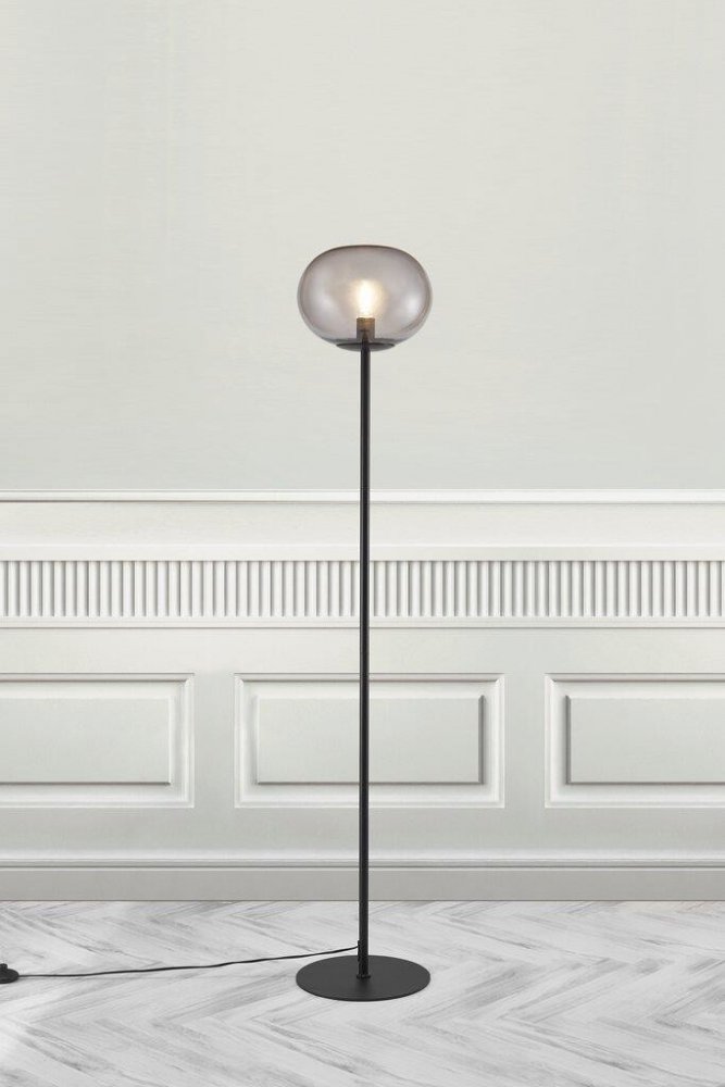 - Elegantní a unikátní vzhled lampy umocňuje skleněné kouřové stínidlo a černá kovová konstrukce.