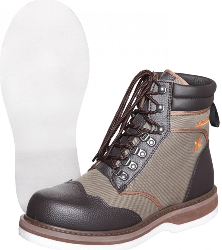 Lehké a pohodlné brodící boty jsou vyrobené z vysoce kvalitních materiálů. Tyto přiléhavé boty jsou vyrobeny z lehké a odolné 100% polyesterové vodě odpudivé tkaniny, ve špičce a v patě je bota vyztužená PVC kůží. Podrážka je vyroben z kombinace z materiálu EVA a plsti, se zvláštní elastickou odolnou konstrukcí je poskytnuta vynikající přilnavost. Materiál:Horní část: 90% polyester, 10% PVCPodrážka: EVA + Plsť