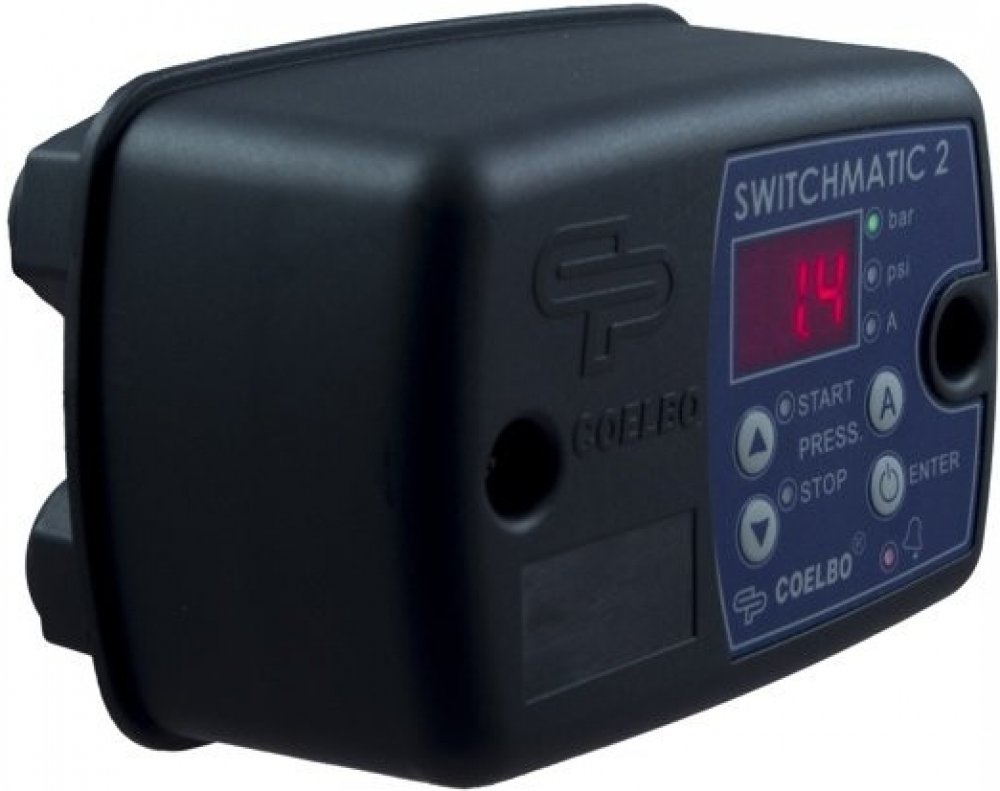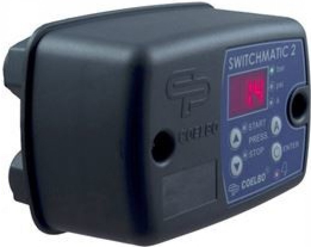 Elektronický tlakový spínač SWITCHMATIC 2 230 V s otočnou maticíElektronický tlakový spínač SWITCHMATIC 2 je zařízení určené pro řízení jednofázových čerpadel s příkonem do 2,2 kW. Díky integrovanému digitálnímu manometru a přehlednému displeji umožňuje přesné měření tlaku a jednoduché nastavení zapínacího i vypínacího tlaku.SWITCHMATIC 2 lze použít i jako spínač diferenčního nebo inverzního tlaku a nabízí možnost kaskádového zapojení dvou čerpadel pro zvýšení výkonu. Instalace je snadná, protože zapojení probíhá stejným způsobem jako u klasického elektromechanického spínače.Funkce ARTSpínač hlídá chod nasucho, přetížení, výpadek fáze i přepětí a podpětí, takže odpadá nutnost instalace dalších ochranných zařízení. Funkce ART (Automatic Reset Test) zajišťuje automatické obnovení provozu po výpadku a prodlužuje životnost čerpadla.Klíčové vlastnosti Digitální manometr Displej zobrazuje aktuální hodnoty tlaku v barech i psi pro přesnou kontrolu systému Snadné nastavení Intuitivní ovládací panel umožňuje přesné nastavení zapínacího i vypínacího tlaku Komplexní ochrana čerpadla Funkce proti chodu nasucho, přetížení a častému spínání zajišťují bezpečný provoz a delší životnost Funkce ART Automatický Reset a Test pro obnovu provozu po výpadku Univerzální použití Možnost samostatné montáže i kaskádového zapojení dvou čerpadel Jednoduchá instalace Zapojení jako u běžného spínače, připojení pomocí vnitřního závitu G 1/4″ s převlečnou maticí Úsporný provoz Režim s nízkou spotřebou energie s LED indikací stavů a alarmů