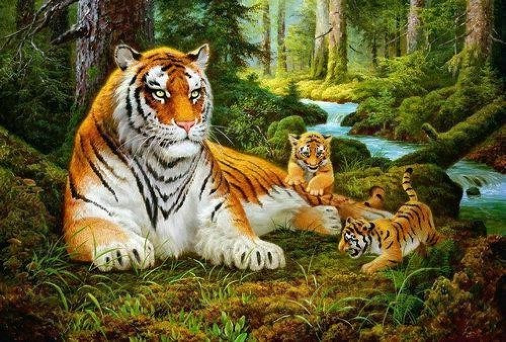 Norimpex Diamantové malování Tygřice s mláďaty 30 x 40 cm