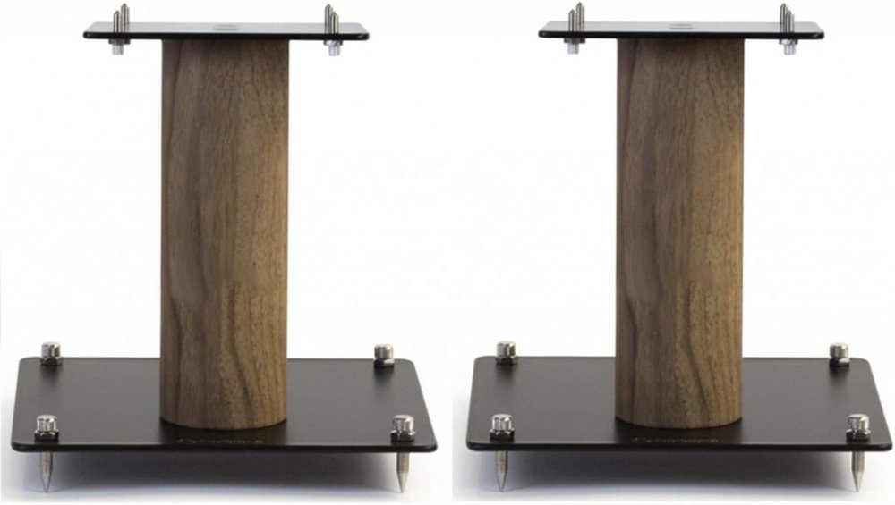 směrem k reproduktoru, s vedením kabelů v ose trubice, je základní referencí mezi nejrobustnějšími stojany na reproduktory.
