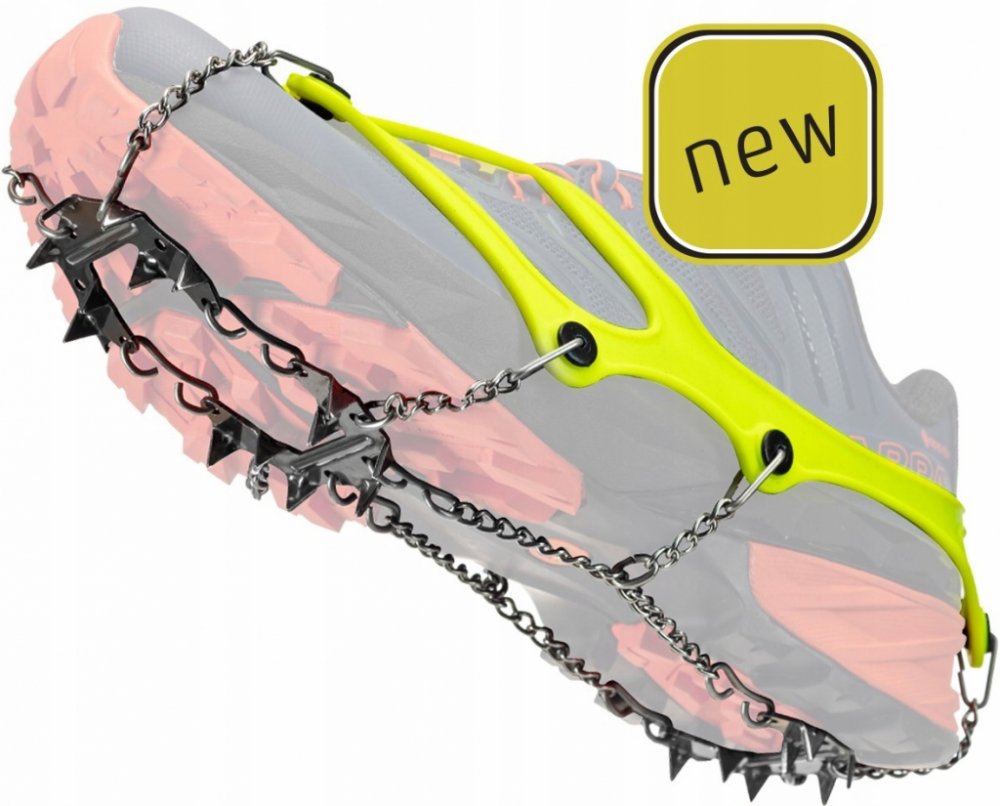 - vynikající přilnavost k ledu a sněhu – ostré hroty pod podrážkou výrazně usnadňují udržování rovnováhy na ledu a tvrdém sněhu;
