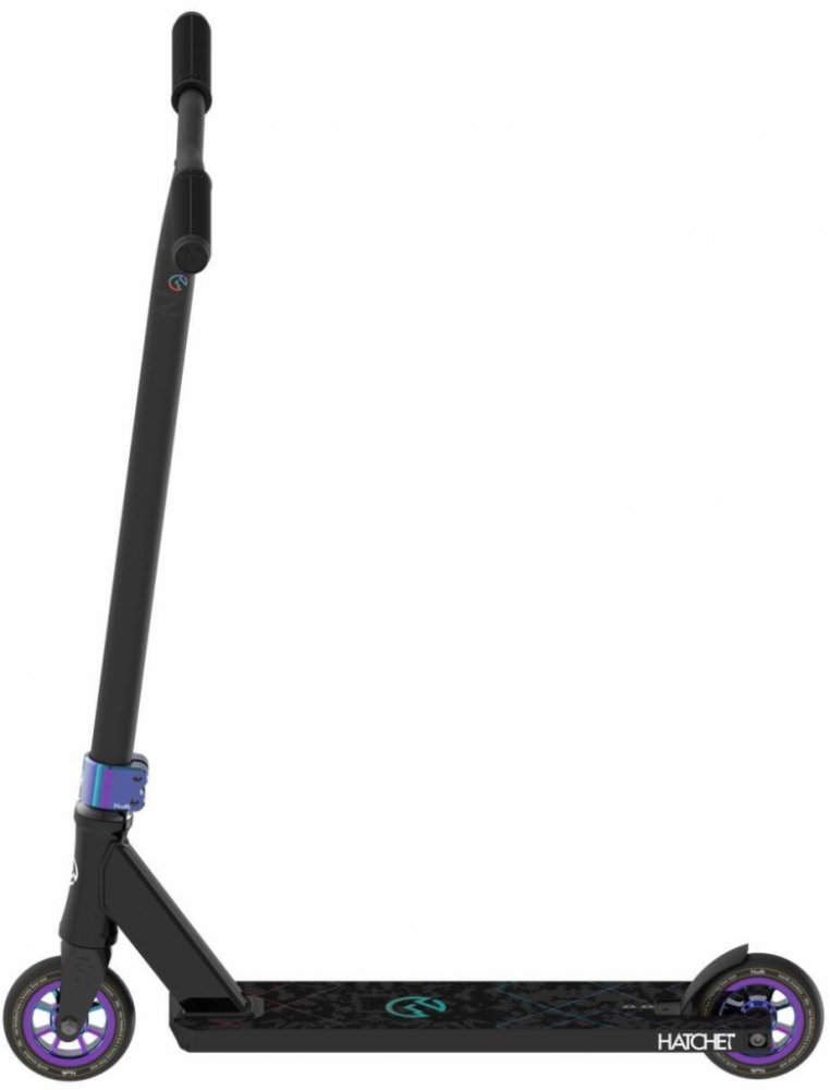Nový model pro rok 2021. Došlo pouze ke změně designu a tvaru řídítek. Super koloběžka pro menší mírně pokročilé jezdce. North Hatchet má výborné komponenty. Například kvalitní 110mm kolečka s hliníkovým středem, bezzávitovou ocelovou vidlici a průmyslový headset nebo desku s hranatým tvarem. Díky tomu jezdec může zkoušet lehčí street.